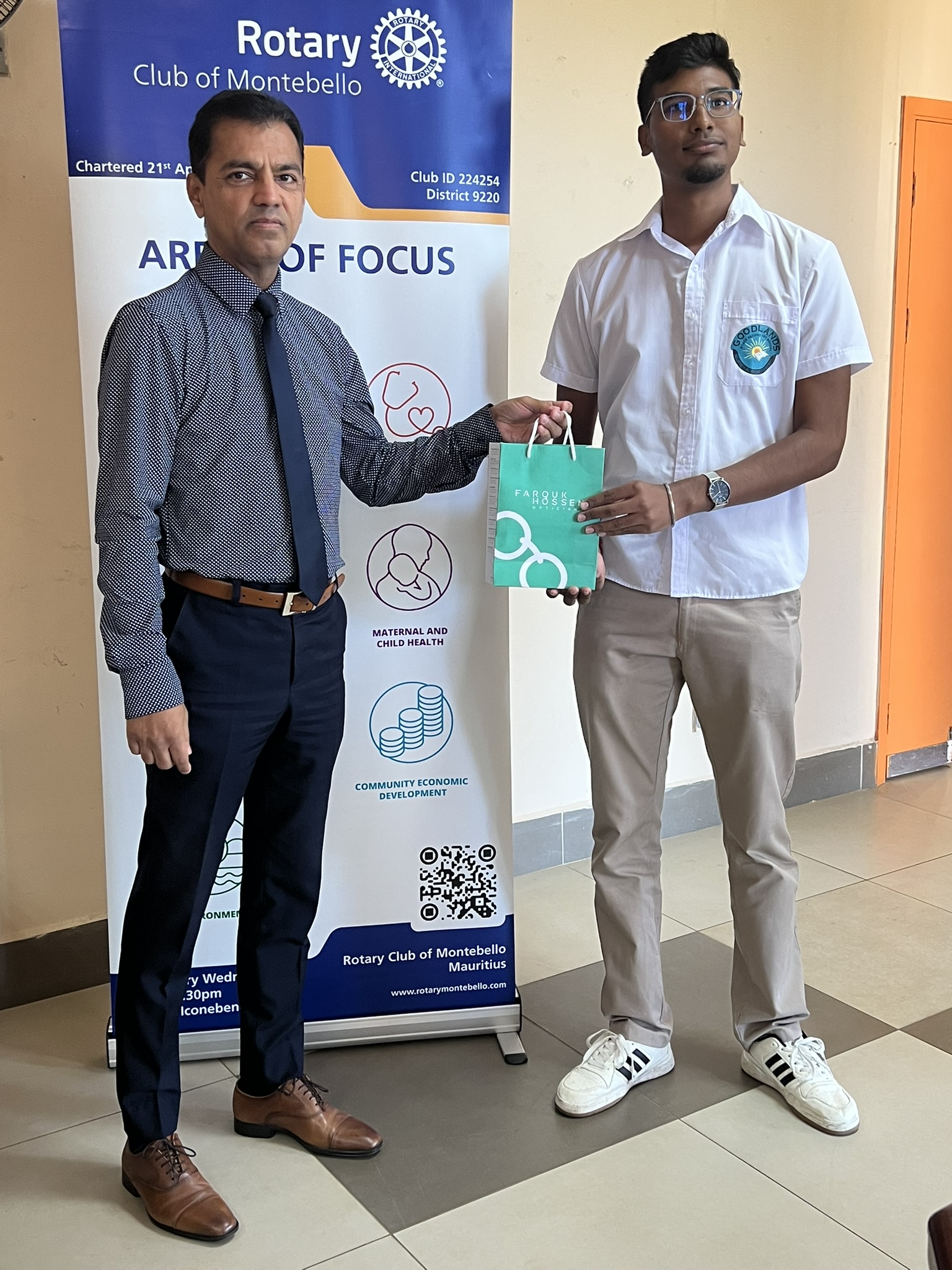 President Uttam and members of RC Montebello extend their heartfelt thanks to PP Reihaz and Farouk Hossen Opticians for their generous contribution. Their kindness has made a real difference in the daily lives and academic journeys of these young learners. π